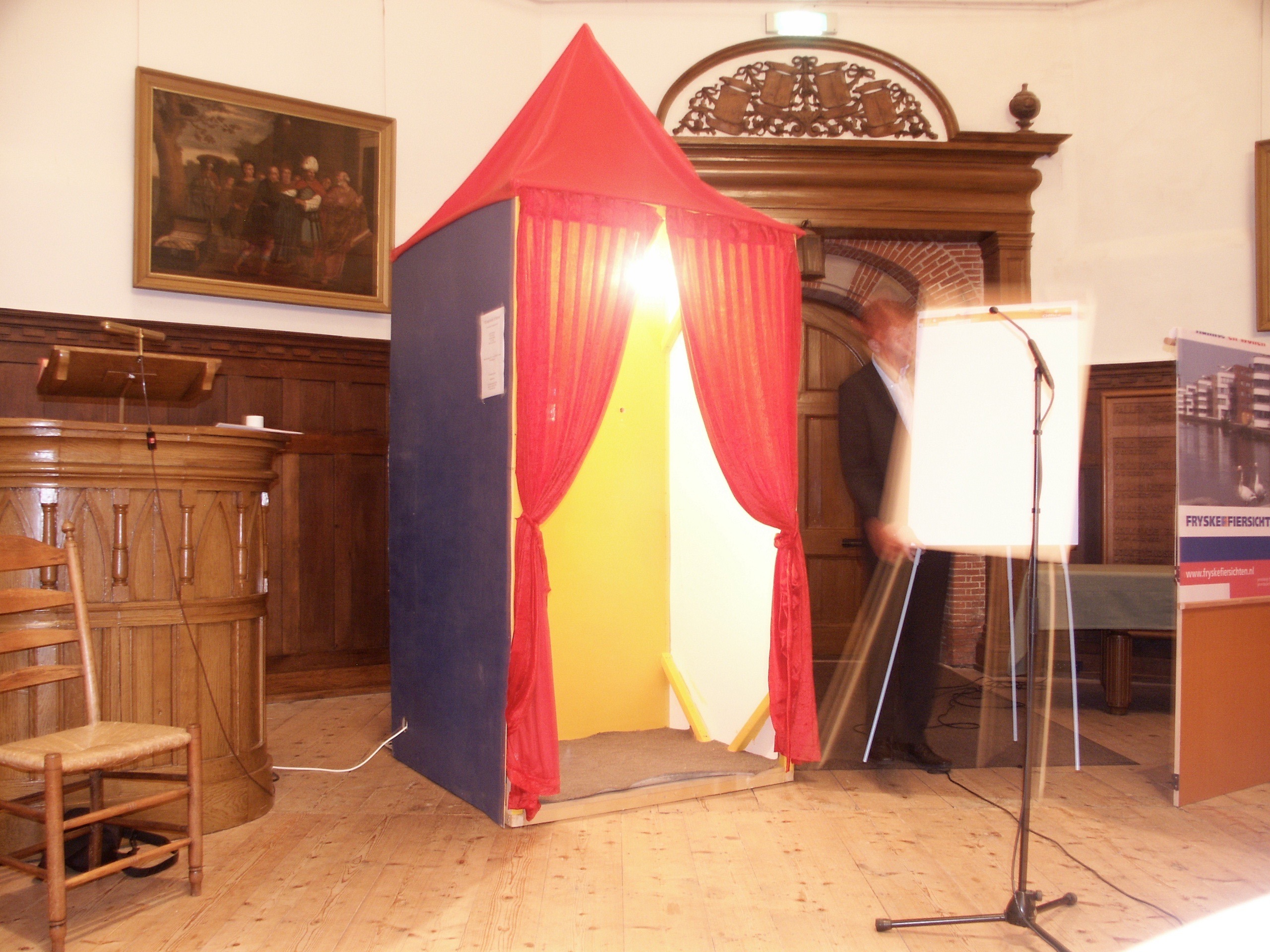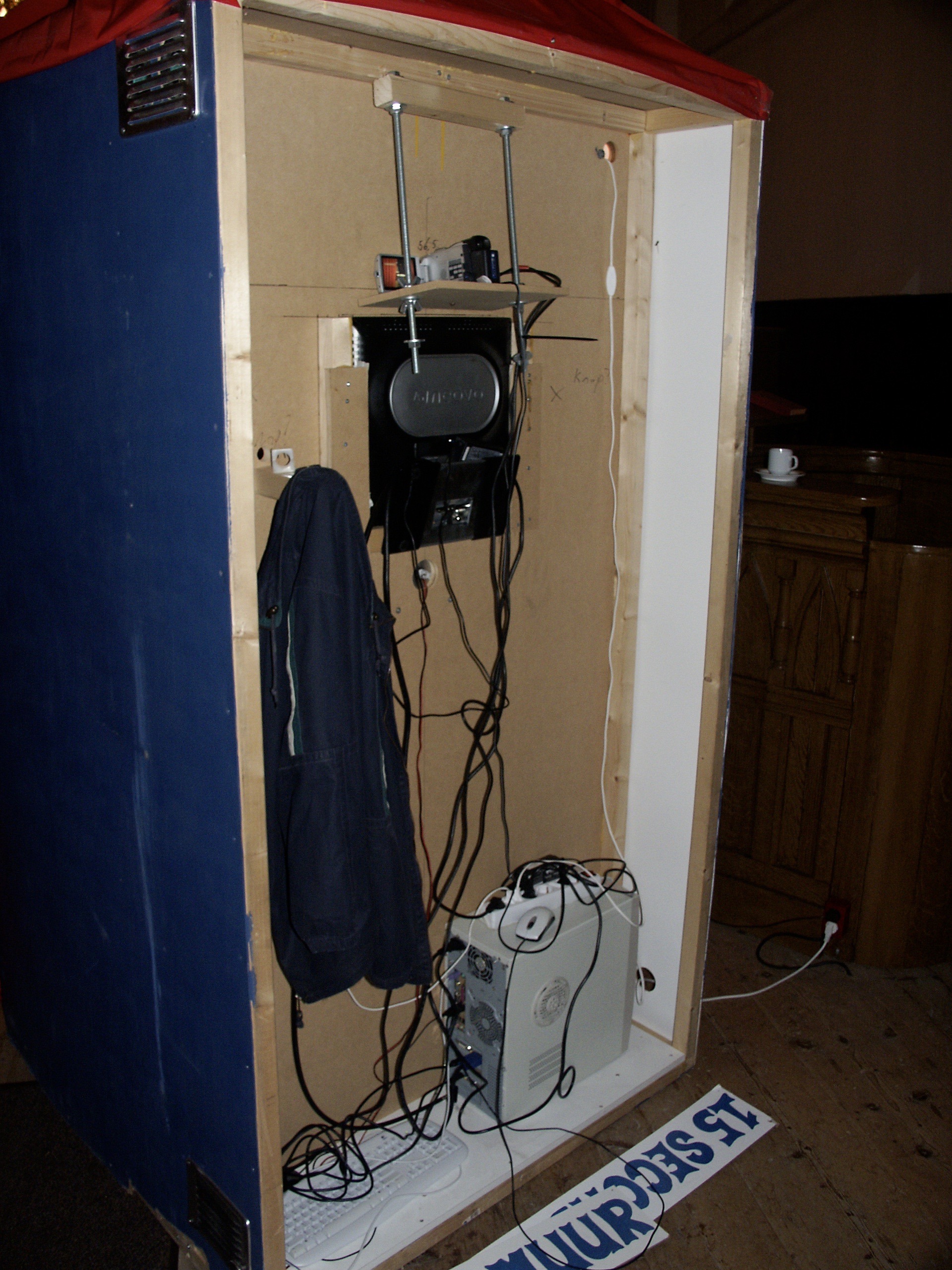 18:00 werd ik in Sneek verwacht. 17:50 klonk beter in mijn oortjes. Ik had geen geschikte s-video kabel meer liggen. Die nog even snel gekocht en het opbouwen kon beginnen. Nadat het spul was opgebouwd heb ik nog even een Shoarma gedaan. Wat had ik lang niet meer gegeten in de Mangerie.