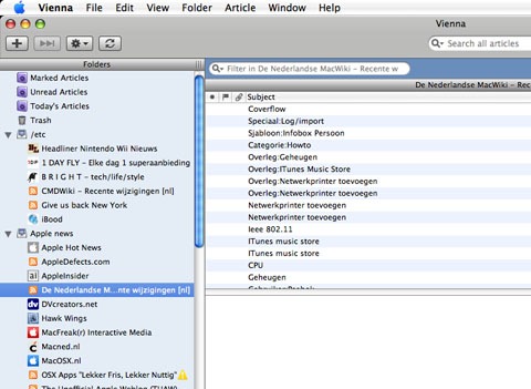 Om die reden heb ik geen nieuwssites meer in mijn RSS reader staan. Een klein gedeelte van die websites in Vienna waren samen verantwoordelijk voor het grootste gedeelte van de berichten. Deze websites bezoek ik weer op de ouderwetse manier met de browser. Ik kan zelf kiezen wat ik lees. En oud nieuws staat er niet meer op.