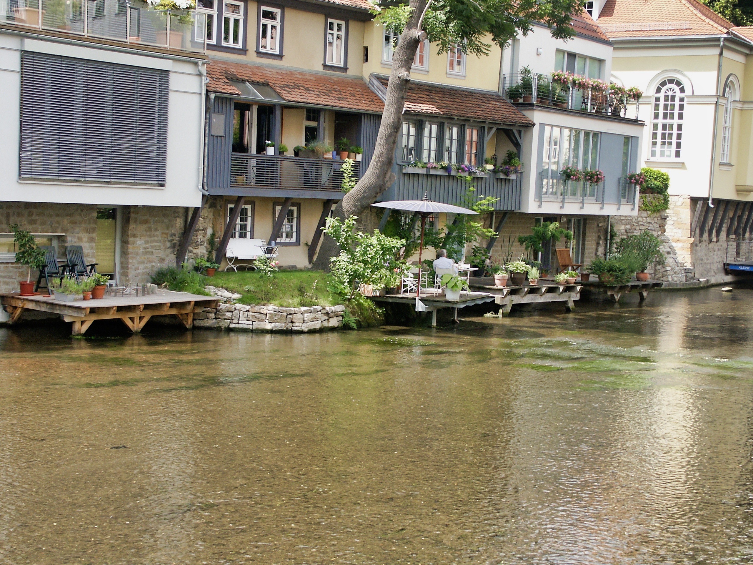 Hierboven zie je de brug van boven geschoten. Het is de oudste en enige bewoonde brug in Europa. De brug bestaat uit allemaal kleine winkeltjes die de onwetende toerist moet voorzien van de nodige souvenirs. Ik probeer geen toerist te spelen en ga daarom je ook niet vermoeien met alle weetjes die ik dit weekend heb gehoord over de brug. Leun achterover en geniet van de stad. Overal waar je kijkt in Erfurt zie je kerken en oude gebouwen. De geallieerden en Russen waren vroeger nog niet in bezit van slimme lasergeleide en satelliet gestuurde bommen. Dus het oude centrum is enorm bespaart gebleven van enige oorlogsschade. Vandaag de dag kan iedereen genieten van dit mooie stukje geschiedenis.